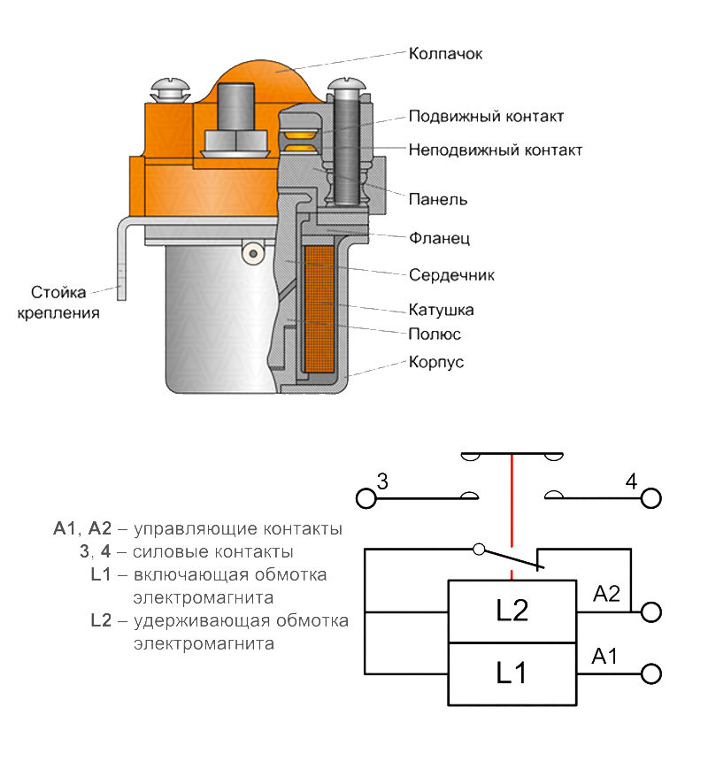 Устройство и схемы коммутации контактора серии КМ-400 ДВ