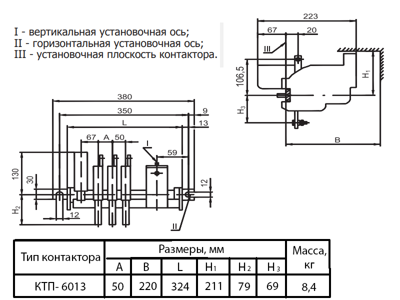 - Дугогасящую систему -элемент обеспечивающий безопасную работу контактора путем гашения дуги возникающей при отключении контактора.