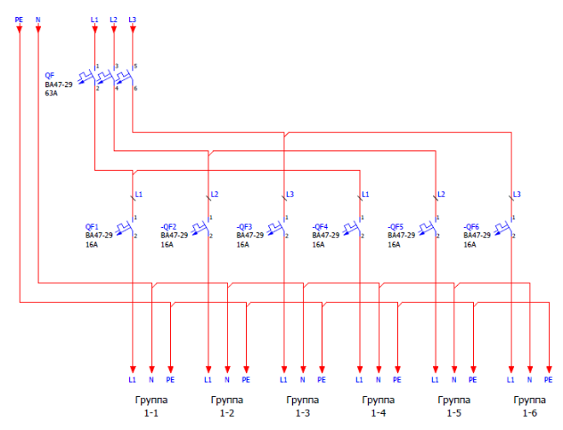 Схема ОЩВ- 6 (ВА4729 63А/6*16А)