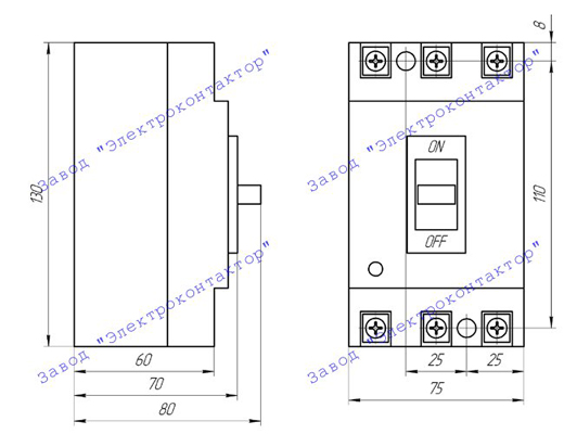 Габаритные, установочные и присоединительные размеры ВА 57-31