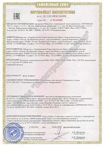 Данный Сертификат подтверждает, что производимая продукция - пускатели электромагнитные серии ПМ, ПМЛ, ПМА, ПМЕ, КМИ, ПАЕ, ГОСТО соответствуют требованиям Технического регламента Таможенного Союза ТР ТС 004/2011 "О безопасности низковольтного оборудования".