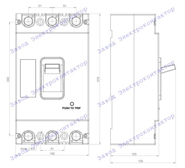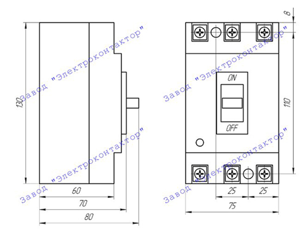 Внешний вид, габаритные, установочные и присоединительные размеры ВА5731 (80А, 100А):
