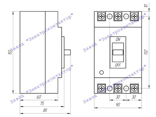 Внешний вид, габаритные, установочные и присоединительные размеры ВА5545 (ВА-5545):