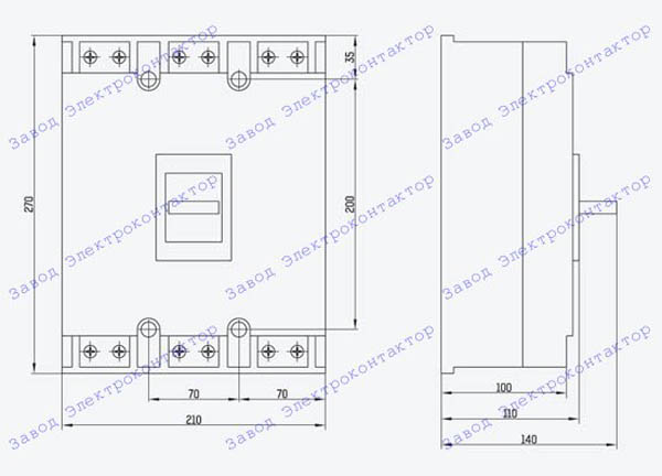 Внешний вид, габаритные, установочные и присоединительные размеры ВА5735 (габарит 1):