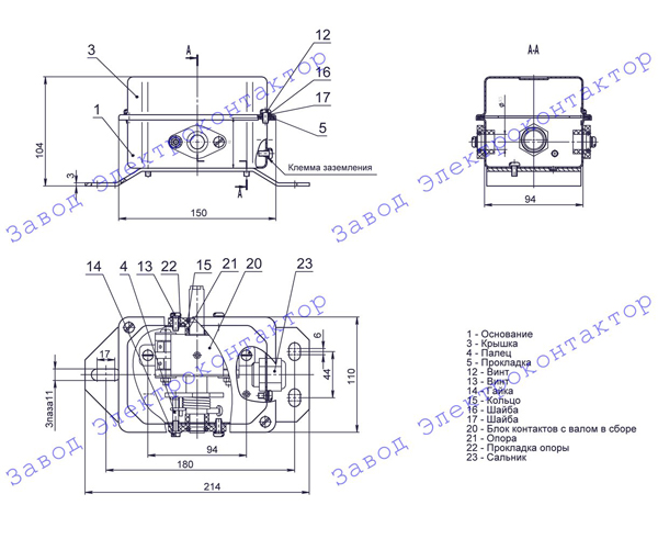 Внешний вид, габаритные, установочные и присоединительные размеры выключателя КУ703: