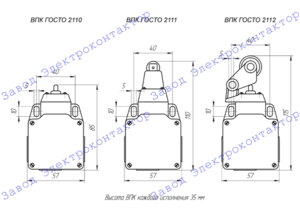 Выключатели путевые контактные (ВПК) предназначены для коммутации электрических цепей управления переменного напряжения до 660В, частоты 50(60)Гц и постоянного напряжения до 440В под воздействием управляющих упоров в определенных точках пути контролируемого объекта.