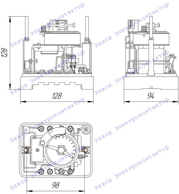 Два контакта (замыкающий и скользящий), срабатывающие с выдержкой времени и один переключающий контакт мгновенного действия