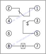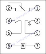 Один контакт (замыкающий), срабатывающий с выдержкой времени и один переключающий контакт мгновенного действия, размыкающий контакт которого использован в цепи питания реле